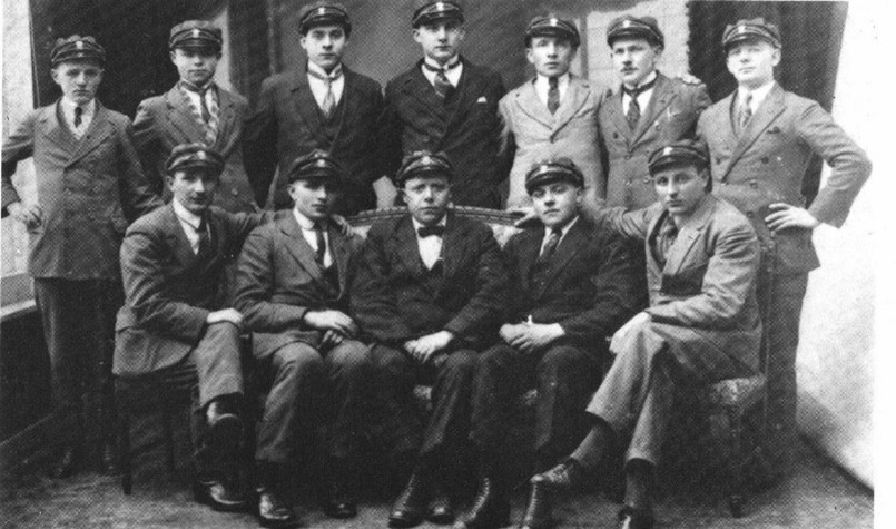 Oprichtingsfoto van het bestuur Wiel in Wiel uit 1925 met de typische petten