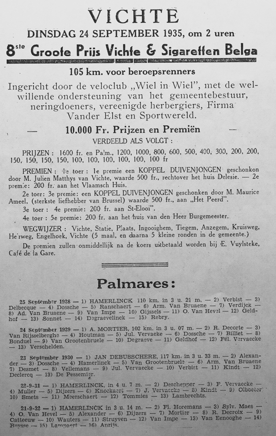 Passage Gro(o)te Prijs in het centrum van Vichte, editie 1935