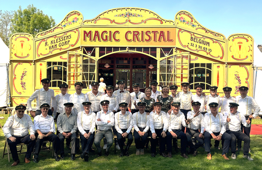 Bestuur "Wiel in Wiel" bij 100 jarig bestaan met de historisch opnieuw geconfectioneerde retro pet in 2025